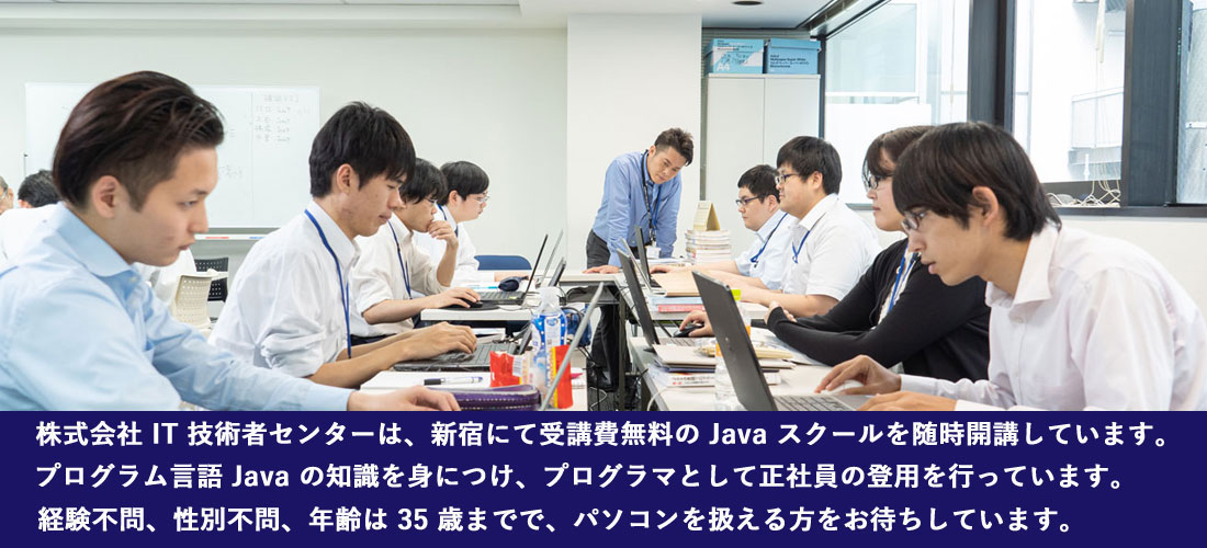 IT 技術者センターはプログラマーを育成して正社員として雇用しています。 新卒だけでなく、中途採用も行っています。 弊社の一番の特徴としては、未経験者でも積極的に採用を行っています。 弊社に入社する社員の半数以上が未経験者です。 プログラム言語や社会人としての研修があり、研修が完了した段階で実務を行っていきます。